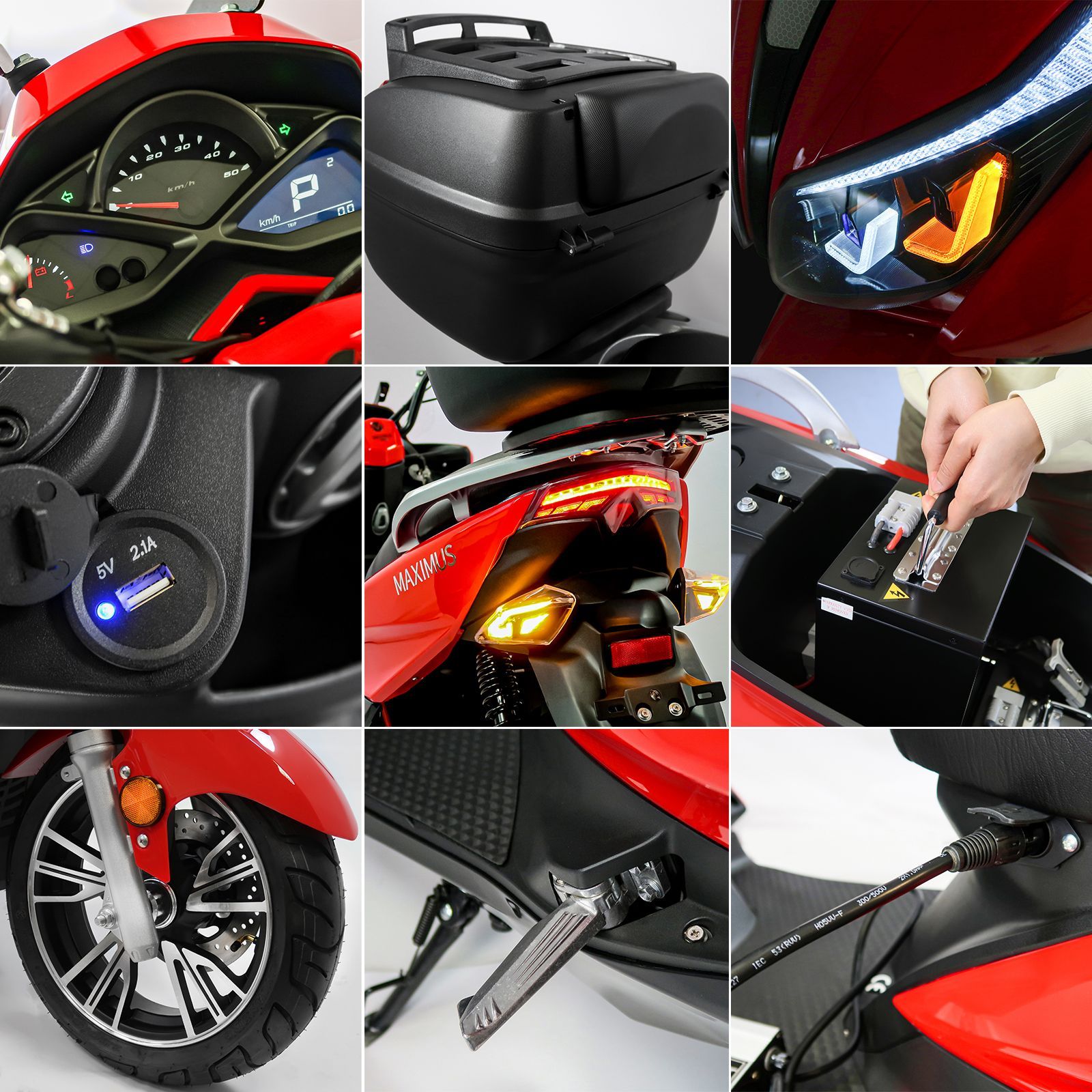 | Accesories | Charger, 2x mirrors, top case, mobile phone holder manual, EEC document |